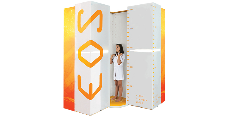 يتم تشغيل جهاز EOS، الذي يوفر صورة لكامل الجسم أو لجزء من الجسم، من الأمام والخلف والجانب في آن واحد، بواسطة الأشعة السينية مع إشعاع أقل بنسبة 90%. يمكن التقاط رسم بياني ثنائي الاتجاه للجسم كله في آن واحد بطريقة النمذجة ثنائية الأبعاد. يتم إنشاء الصورة ثلاثية الأبعاد.